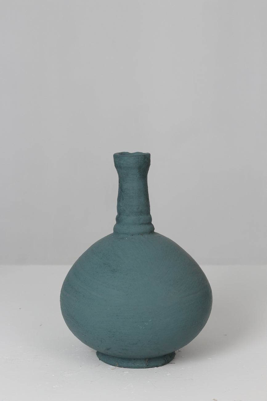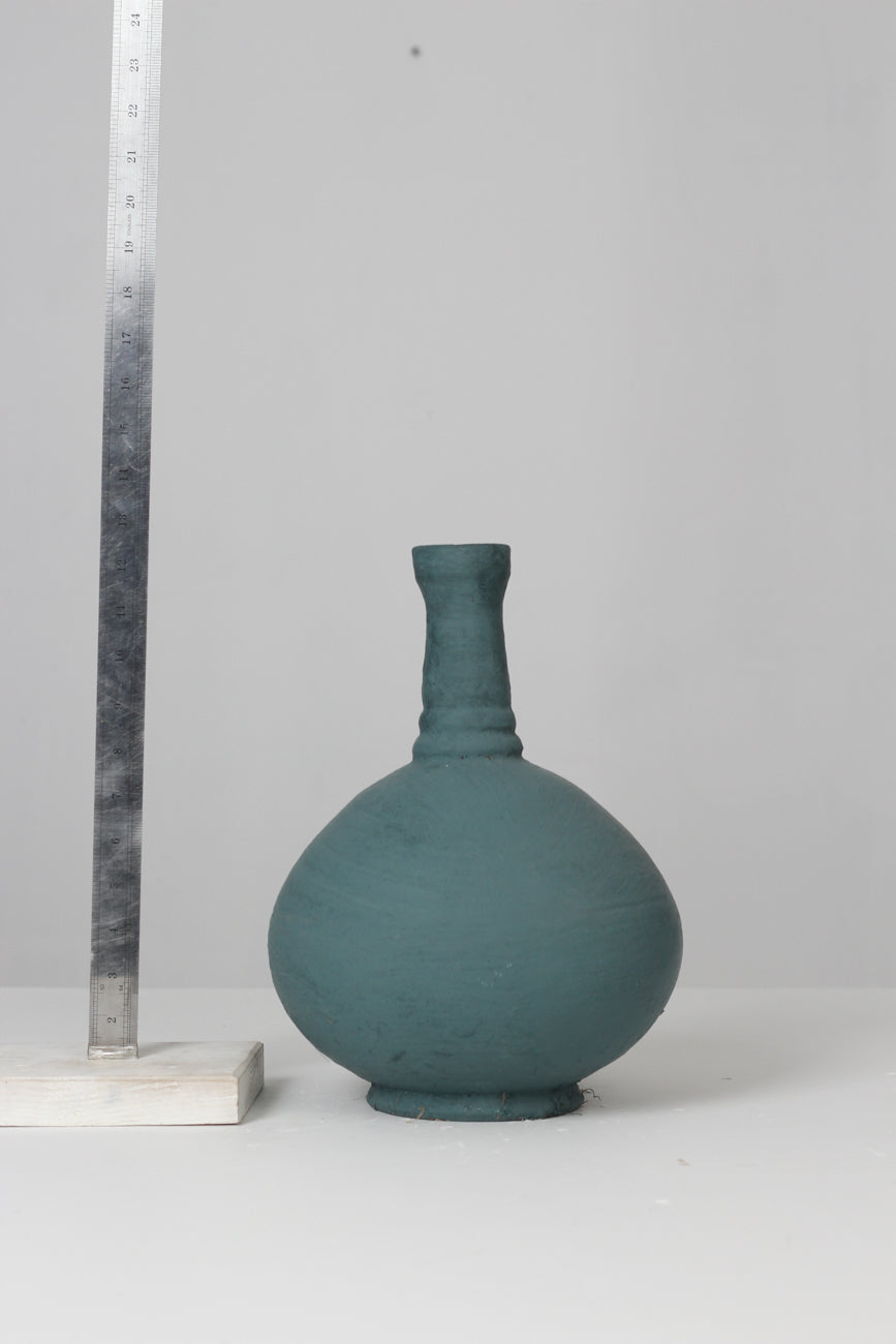 Teal blue old painted glass bottle 02"x 13" - GS Productions